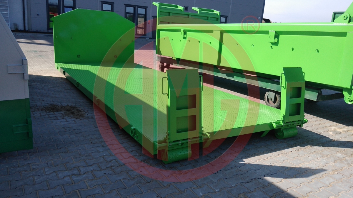 Abrollcontainer Ladeboden mit Alu-Bordwänden, Plattform-Ladeboden, Abrollcontainer mit Stahl-Bordwänden, Plattform mit Auffahrrampe, Ladeboden mit Hakenhöhe 900